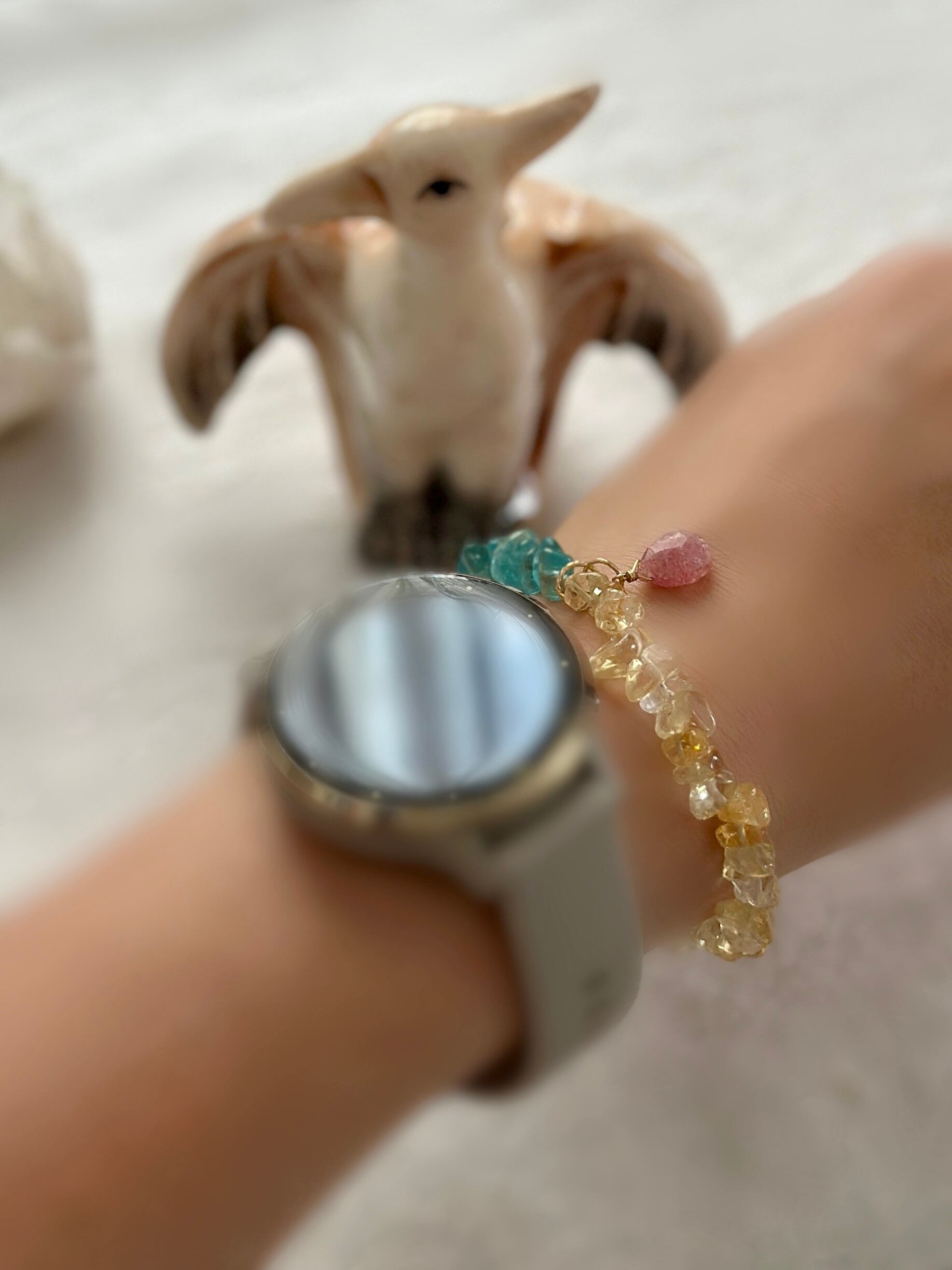 豊かな人生を祈願 シトリンとアパタイトのブレス(ストロベリークォーツ14kgf 追加オプション)