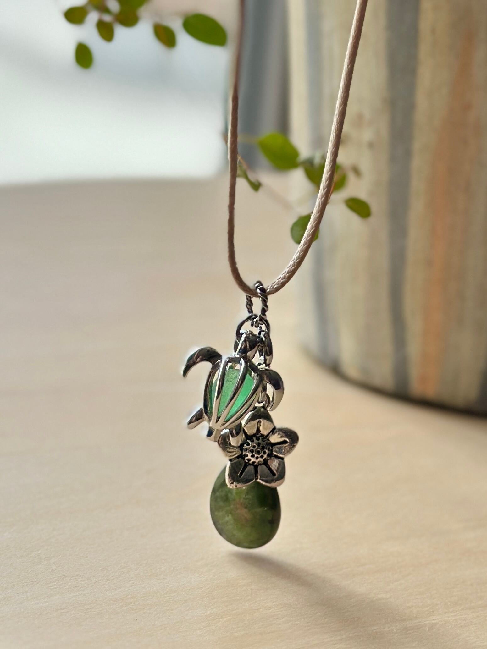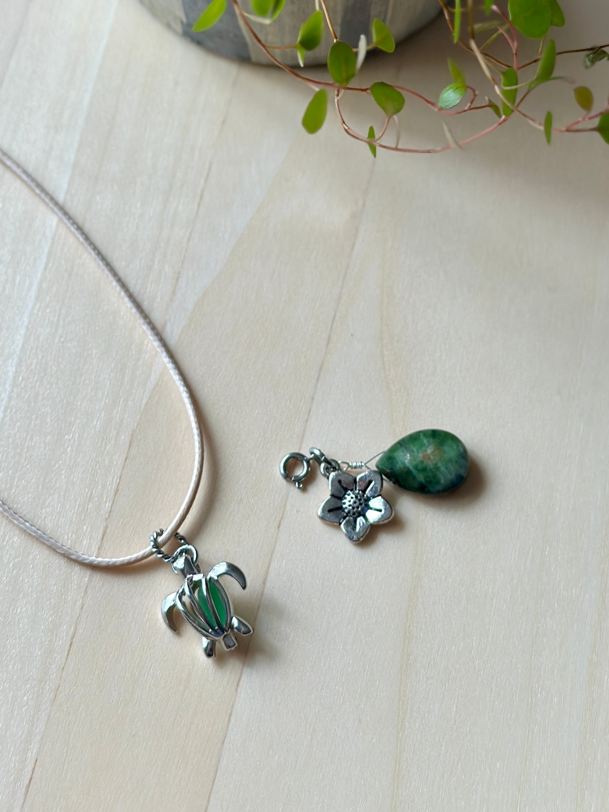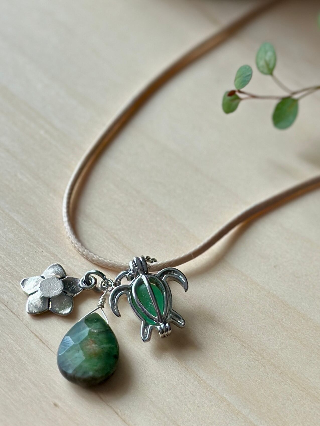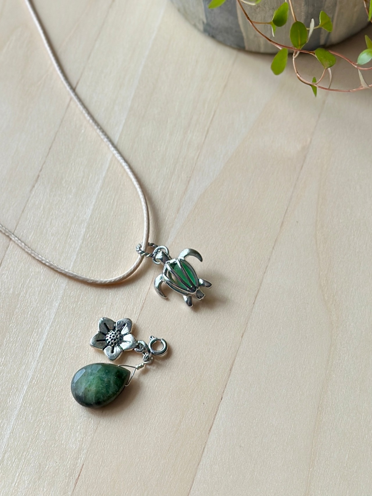 幸せを運ぶ守り神である海亀のチャームにサイズがぴったりのシーグラス