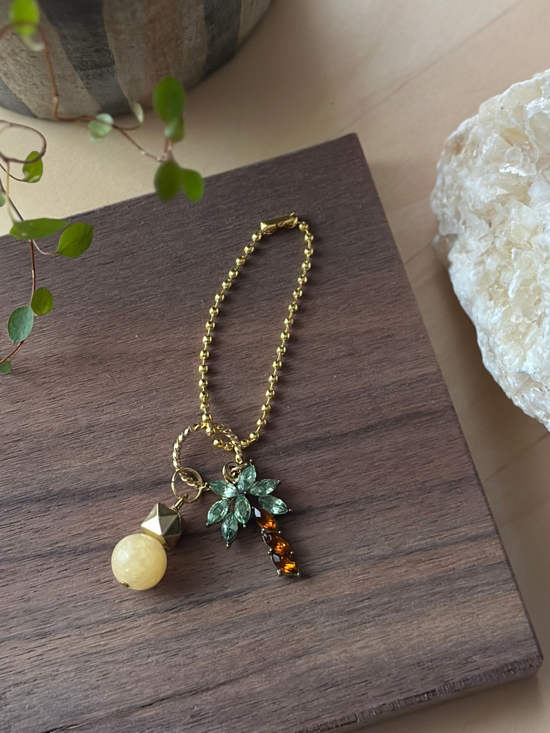 【ハニーストーン(アラゴナイト)とパームツリーの御守りチャーム】