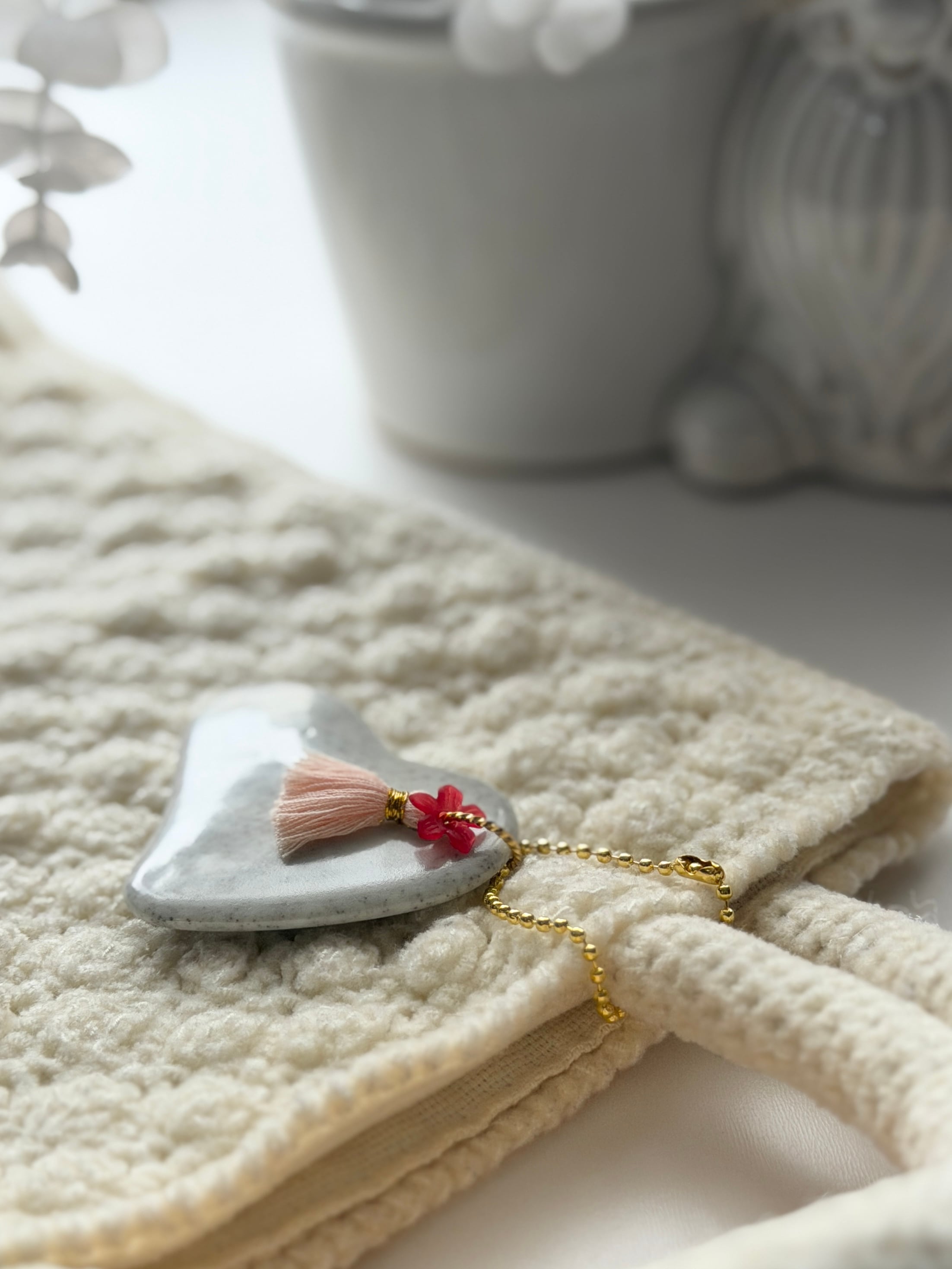 【北投温泉石 かっさ ハート型 フラワータッセルの御守りチャーム付き】