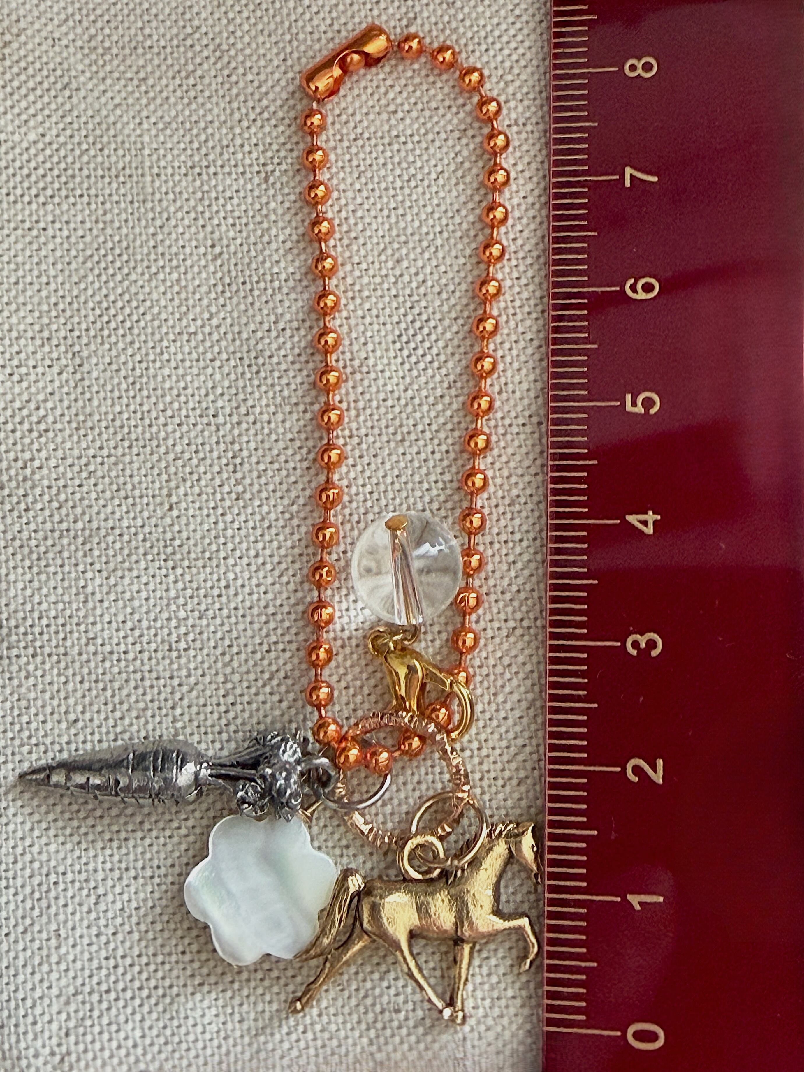 馬と人参チャームの御守り(お馬さん・人参・水晶・虹色マザーオブパール)