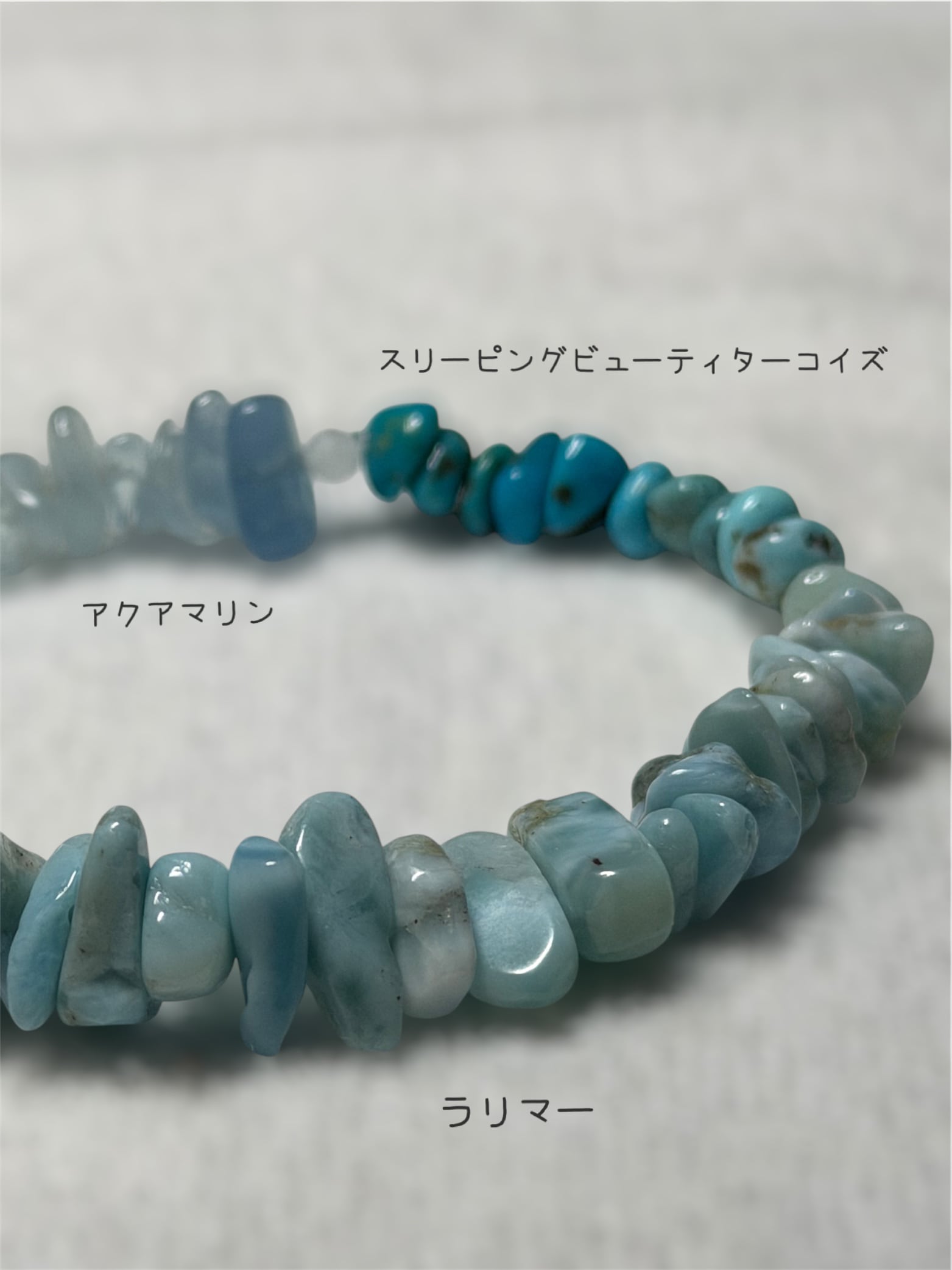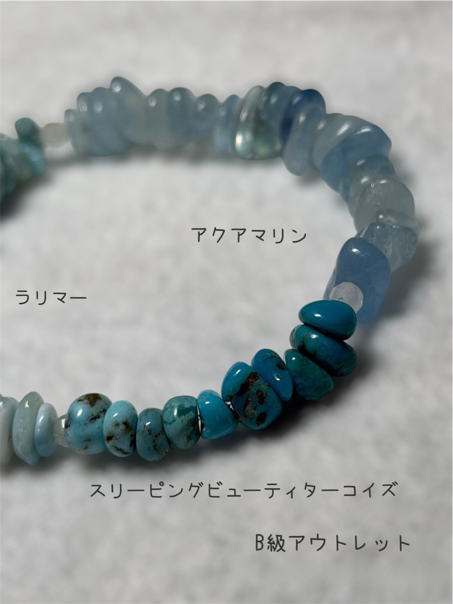 【B級アウトレットSALE】さざれ石ブレスレット「海」ラリマー・スリーピングビューティターコイズ・アクアマリン