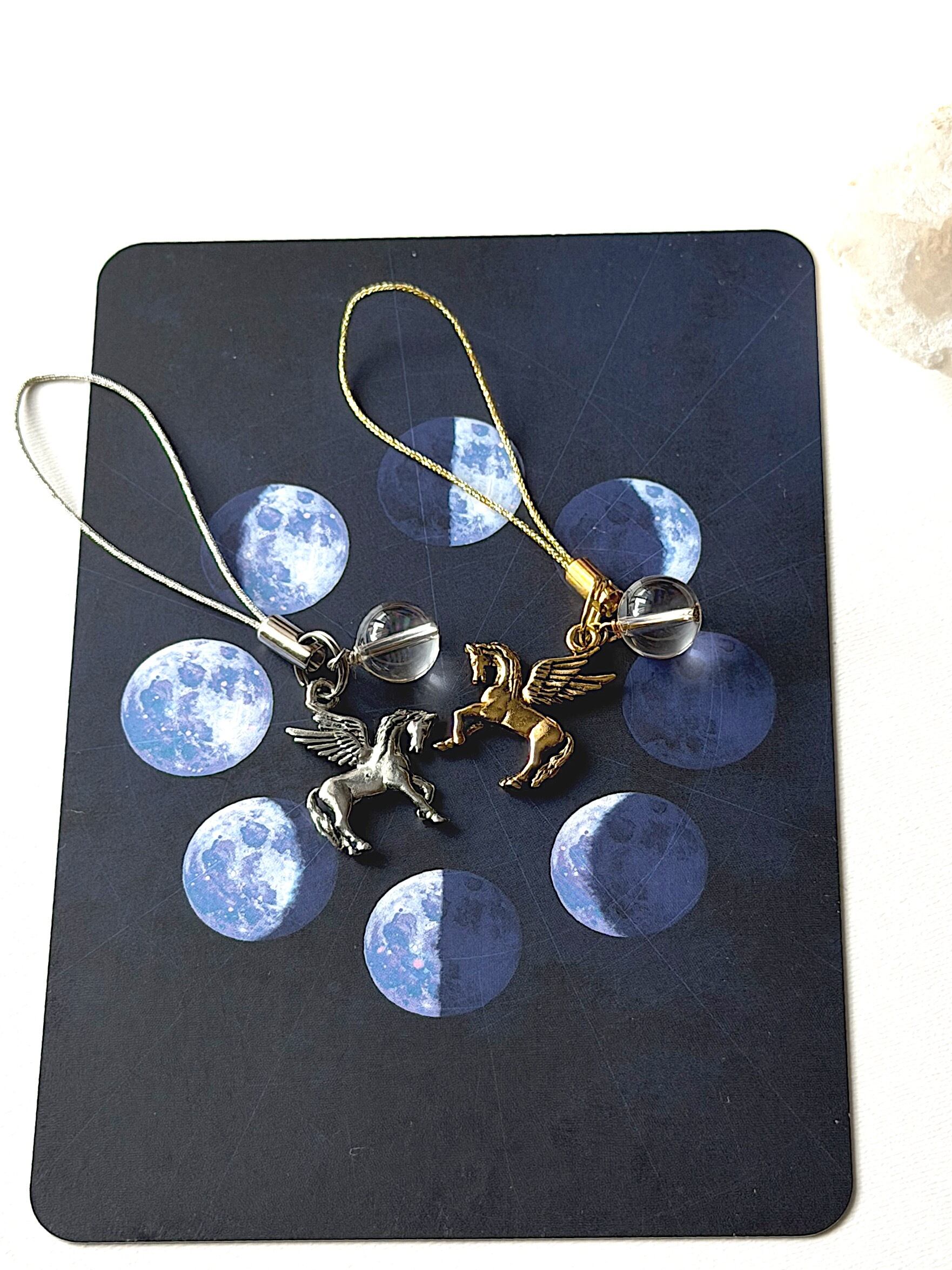 【水晶とペガサス御守り金銀ペアセット《ゴールド色&シルバー色のペアセット》】