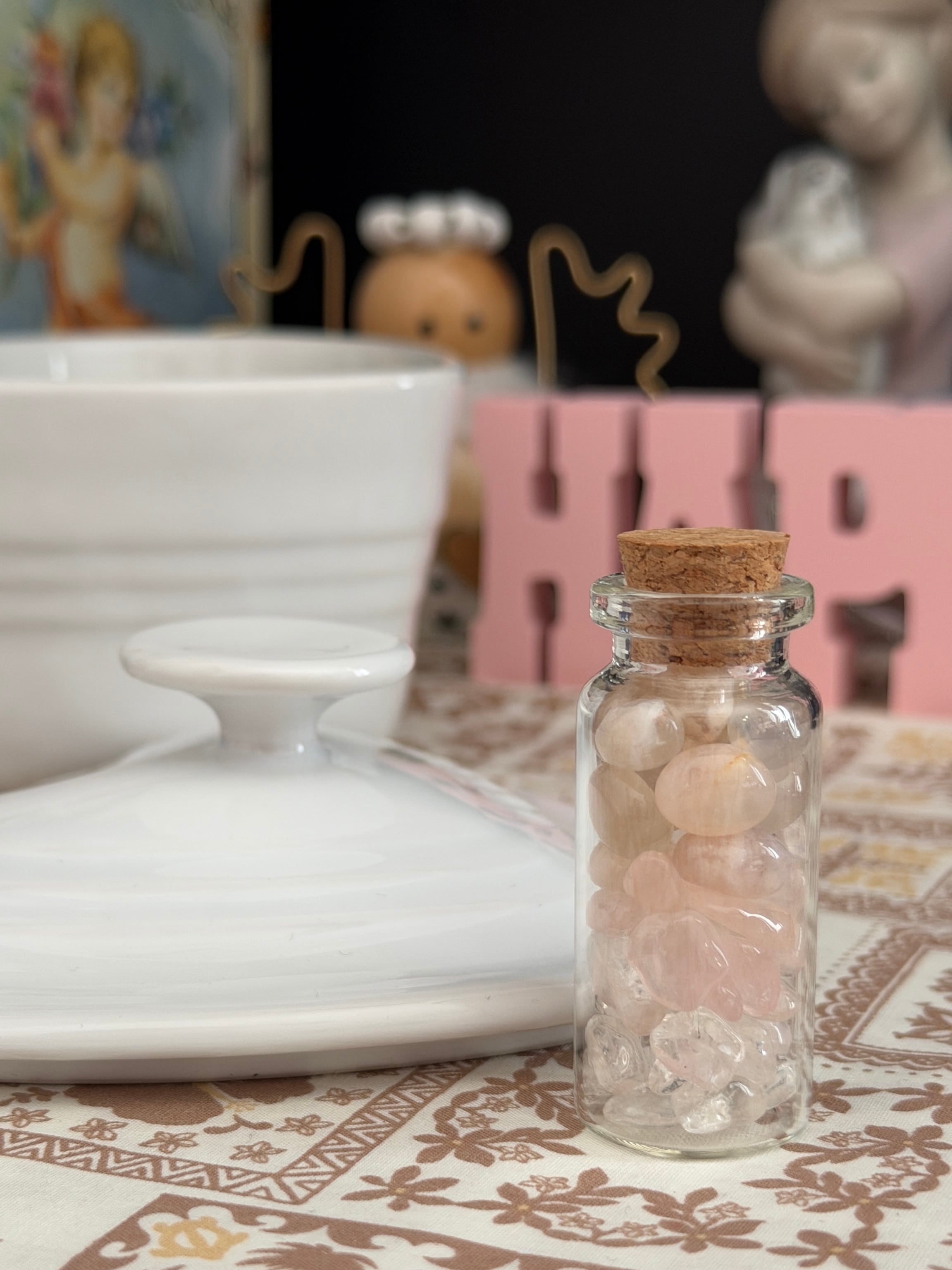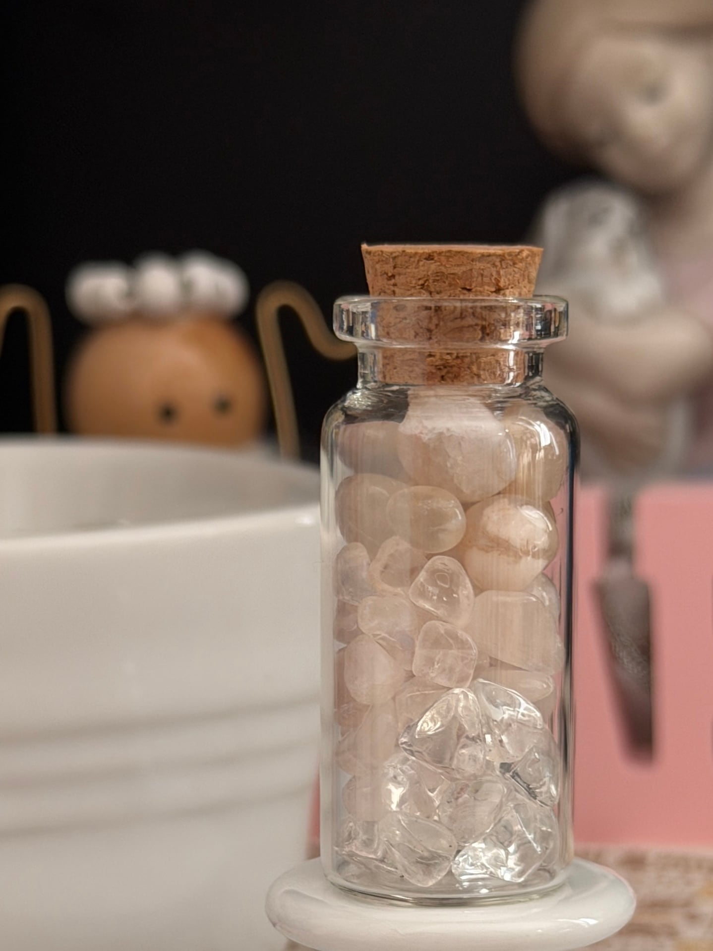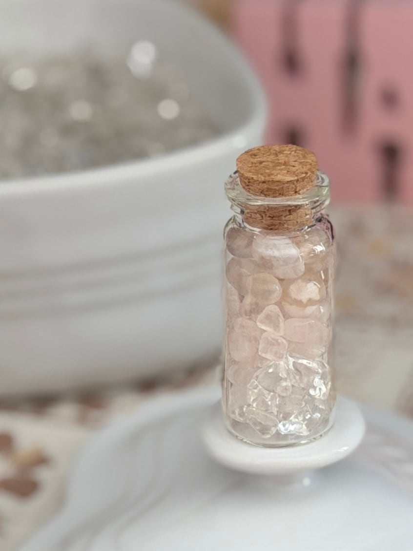 3種の天然さざれ石(クリア水晶・ロークォーツ・桜アゲート)入り小瓶