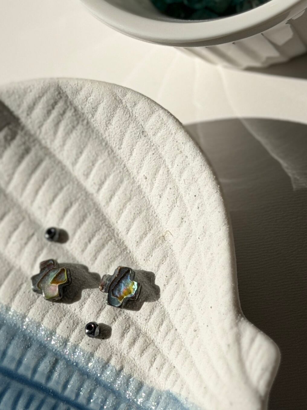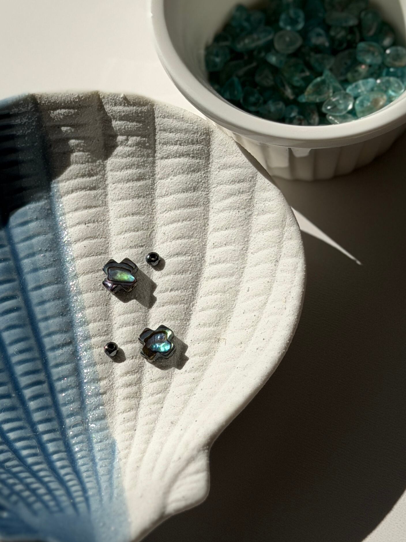 アバロンシェル(アワビ貝)の中でも虹色が美しいパウア貝×海色アパタイト
